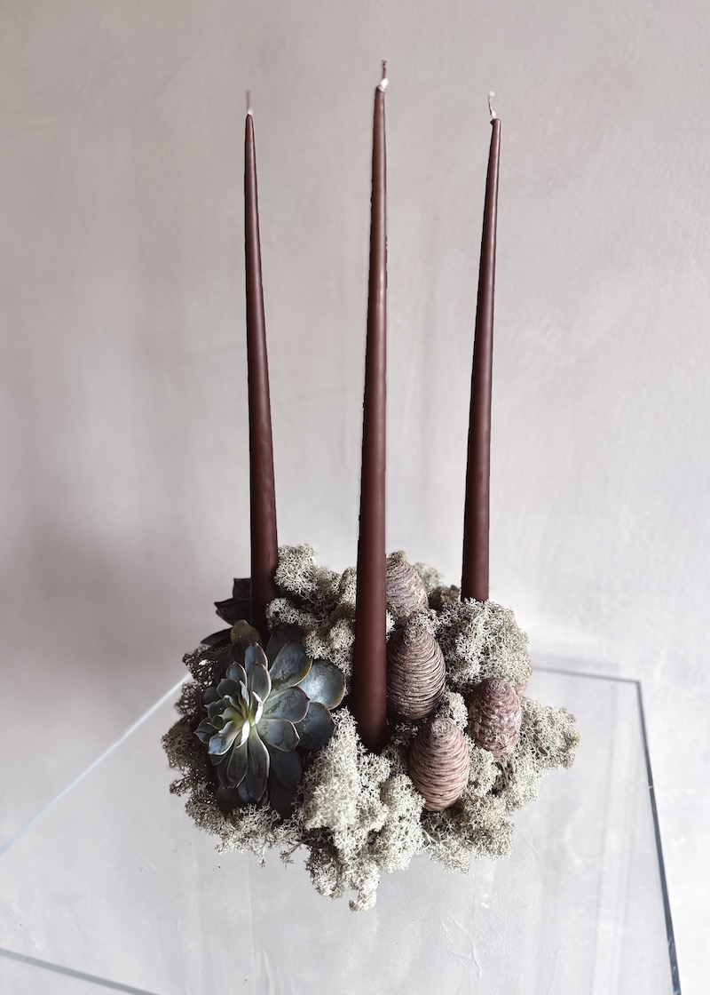 Nordic Advent – Adventski aranžman od islandskog lišaja sa smeđim svijećama