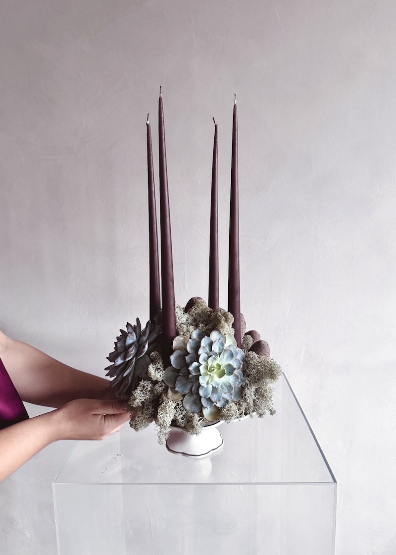 Unesite prirodnu, nordijski inspiriranu eleganciju u svoj dom uz Nordic Advent, ručno oblikovani adventski aranžman izrađen na postolju obloženom islandskim lišajem. Meka, baršunasta struktura lišaja i njegovi duboki zeleni tonovi stvaraju moderan, smirujući i minimalistički blagdanski ugođaj.